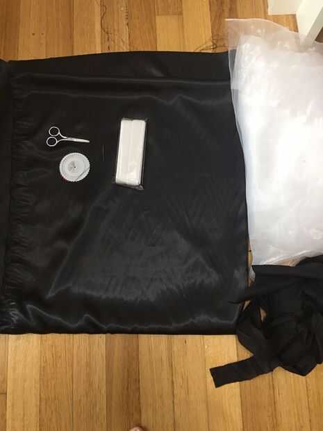 Personalmente creo que no importa el tipo de tela que utilizas, pero usé barato negro satén ($3 por 1m cuadrado) y la tela escarpada translúcida brillante decorativa ($1,5 para cuadrado de 1m). Si eres nuevo en coser y hacer los patrones, te recomiendo tener al menos 1m de tela de práctica barato, el tipo de algodón rígido ($1,8 para cuadrado de 1m) para que probar a coser a mano.