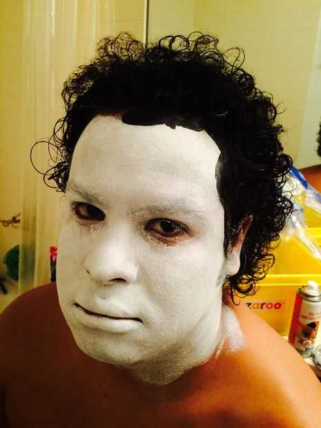 Primer paso: pintar la cara, orejas, cejas y cuello todo blanco. Usar pintura a base de agua. Tomó cerca de 2 capas aplicados con una esponja de maquillaje. No se olvide de todo!