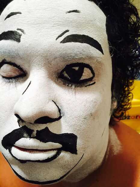 Último: Los labios y el bigote. De nuevo, dibujé sobre sus labios naturales para crear la expresión que hace Neil.