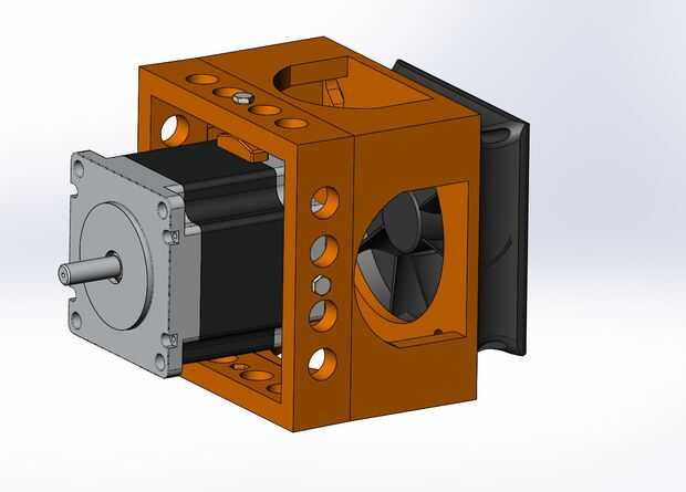 la primera parte es el cuerpo principal que está montado directamente en el motor de pasos con cuatro tornillos M3x12 (y tuercas).