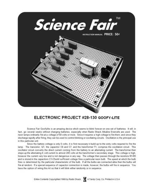 Para construir el kit, necesitará el conjunto revisado manual disponible aquí . He guardado la marca original y publicación de estilo de la ciencia Feria neón Goofy Lite para preservar la apariencia original de la documentación para el constructor. Pero cada página ha sido actualizada para reflejar los cambios que he hecho con el fin de incorporar piezas de modernas y disponibles.