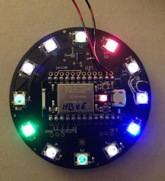 La chispa principal Internet botón escudo sólo 11 LEDs de NeoPixel, pero tiene espacio para y casi grita el LED 12 completar el círculo.