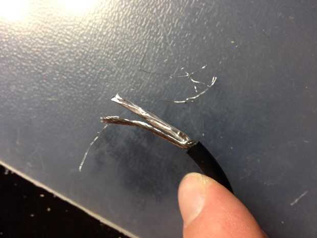 Seleccione los cables de 2 alimentación, corte el resto (blanco y verde + escudo) y cinta con cinta aislante.
