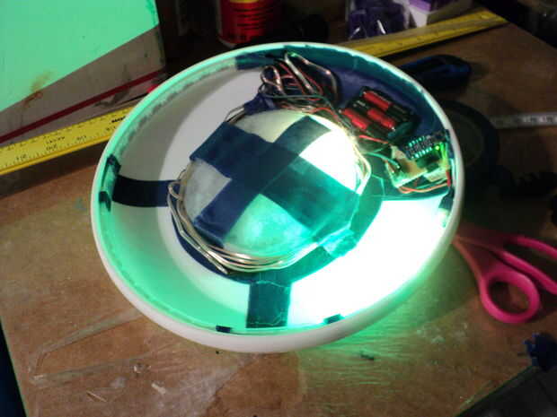 Usted podría también mod esto con sensores que reaccionan cambiando luces cuando produce o atrapado. Agregar un módulo de micrófono y que responden al sonido ya que va por el aire. ¿POV volar discos? Programa como un objeto de temporizador aleatorio para jugar un juego de captura para ver que pone cuando da vuelta a rojo.