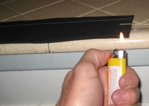 La belleza de este material es que es de goma y se derrite. Esto es una ventaja. En lugar de dobladillo, solo podemos derretir para sellar los bordes. Ten cuidado porque si mantienes la llama allí demasiado tiempo, podría incendiarse. No sería buena.