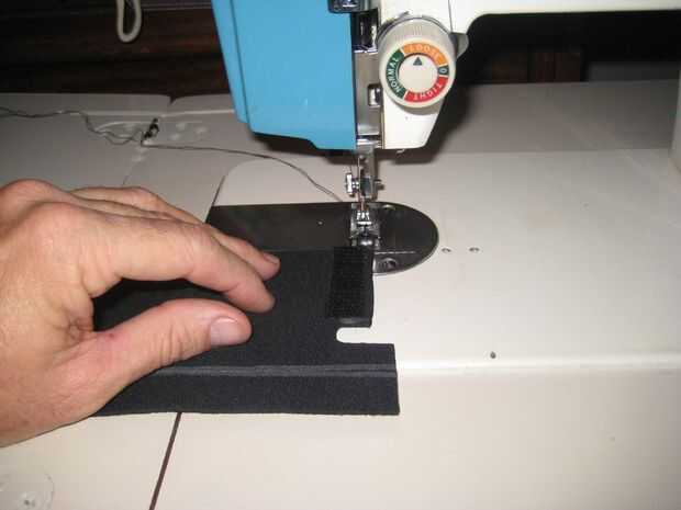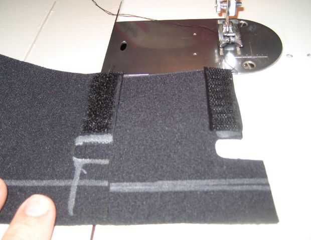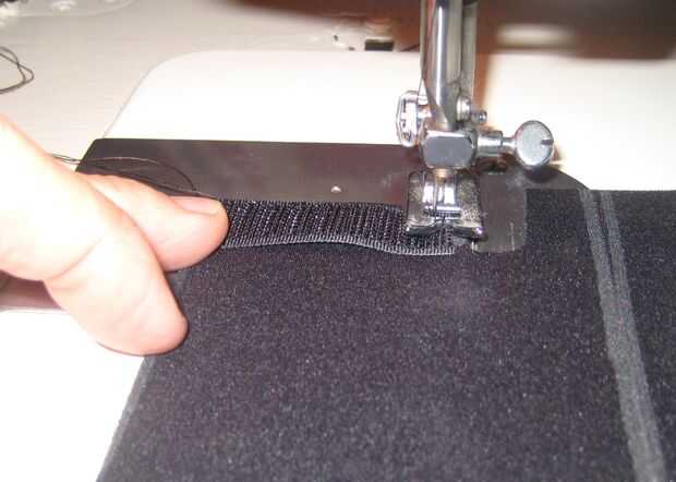 Cortar la cinta de Velcro a la longitud de la zona debajo del asa y coser en el material.