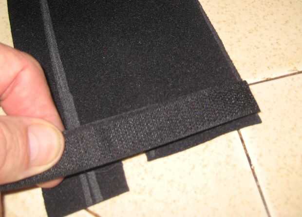 - El Velcro se une a ambos lados de la tela. El gancho está en un lado. La pila está en el lado opuesto y en el otro extremo de la tela.