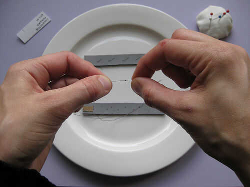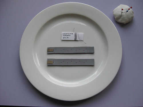 costura hilo conductor en neopreno para crear una almohadilla sensible de la presión. Este sensor es muy similar a la tela doble Sensor o vis versa. Y también cerca del Sensor de presión de la tela, pero la diferencia es que se minimiza la superficie