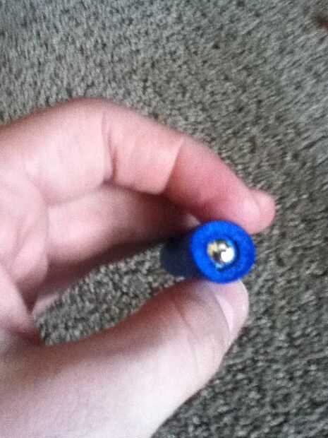 Paso 1: fuentes de NecesitaPistola Nerf--Unos 8 en de hilo-Tijeras-Tac pulgar (Similar a la de la foto)-Nerf bala (puedes usar los que pegan a plasticky cosas demasiado pero estoy usando el que está en la foto)Paso 2: Sacar la tapa de goma Cortar la