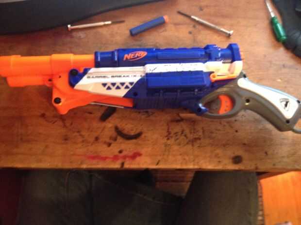Ahora a instalar la cubierta lateral y tornillo en. Ahora tienes una poderosa Nerf barril Break IX-2 :D ¡Que te diviertas!