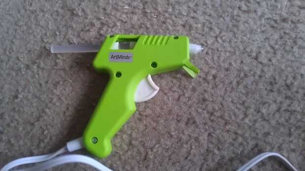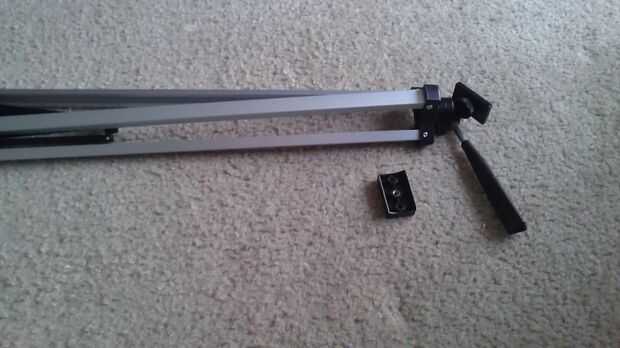 se necesita: una pistola de pegamento caliente, una vieja sin usar trípode con el tornillo en el receptor, un soberano buzbee y unas pequeñas tiras de cartón.
