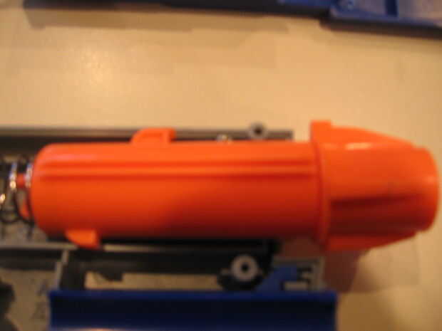 ¿Un poco más * bang * por tu dinero? Si deseas este Instructable detallada sobre desmontaje de restrictor del aire y extensión de cañón para una excelente manera de renovar su blaster Nerf Retaliator. Quitar el restrictor de aire aumenta la potencia
