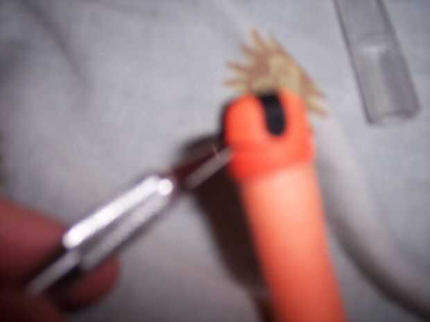 Utilice su cuchillo para cortar la tapa dart dart tag. Asegúrese de dejar intacta la parte inferior de la punta de dardo, no debería haber un agujero. Si hizo o no cortado a la baja, continúe al siguiente paso.