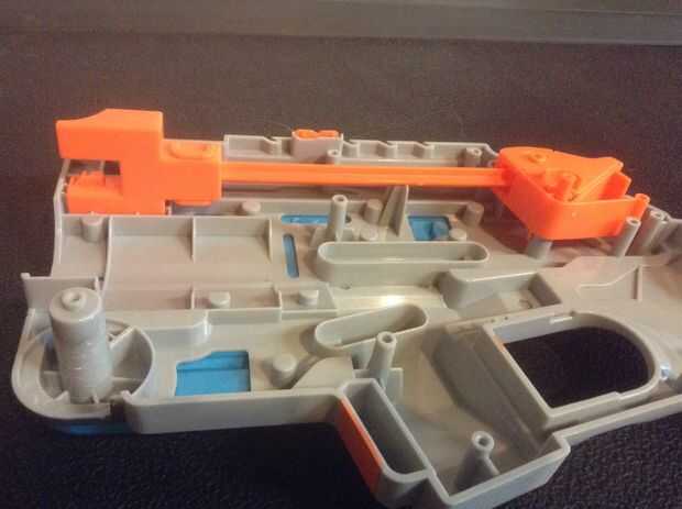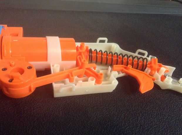 Con realmente cualquier blaster, el primer paso es destornillar todos los tornillos hasta llegar a los componentes internos. Esto es bastante autoexplicativo. Usted puede incluso mantener los tornillos en su lugar, sólo aflójelas para que pueda obtener en el interior. A continuación, utilice el martillo (el martillo de la pistola, no a la herramienta real siendo) para tirar hacia abajo el barril. No, sólo lo suficiente así que usted puede levantar el cañón y la cáscara blanca de la pistola. O eso, o usted puede abrir la cáscara dentro de la pistola, pero recomiendo la primera. Habrá algunas abrazaderas en la cáscara que puede apalancar aparte usando un flathead destornillador. Lo siento no tengo fotos de lo que se supone eliminar, ya he quitado algunas cerraduras antes de que lo hice. He quitado el bloqueo de cebado por lo que pueda de primer mi blaster.