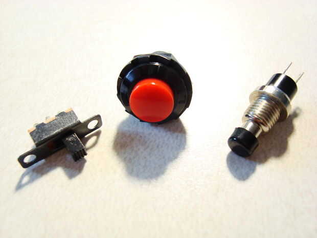 Un interruptor de tipo de palanca es más fácil utilizar. Un tipo de diapositiva es un poco difícil porque vas a tener que cortar un agujero rectangular para montar el interruptor en... Así que opté por un Mini botón:)