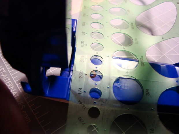 El tamaño del agujero para el soporte de LED es casi 5/16 de pulgada por lo que acaba de hacer un círculo de un tamaño más pequeño 9/32 con un rotulador para asegurarse de que no corté más el agujero.