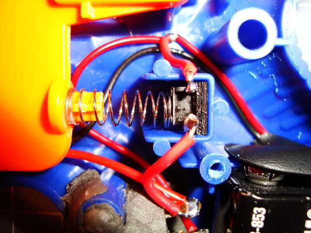 Así que me pareció de raro presionado el botón de luciérnaga mientras oprime el gatillo hacia atrás al mismo tiempo durante el disparo de golpe, no se siente cómoda. Así que añadí un interruptor del tacto detrás del gatillo y el muelle. Ver foto