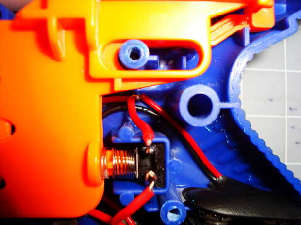 Interruptor de tacto la funciona de maravilla pero usted puede tener problemas si el interruptor no se alinean correctamente. En el cuadro ver cómo el gatillo cuando presionada completamente debe activar el interruptor y toque el poste de tornillo al mismo tiempo. Aquí es donde los espaciadores entran en juego.