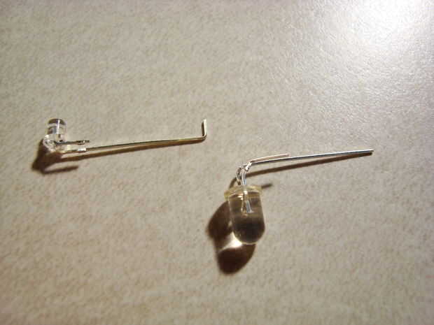 Aquí está una foto de los dos LED con cables doblados previamente con unos alicates. Los negativos se han cortado para acomodar las resistencias...
