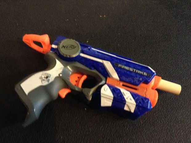 el fuego de nerf más fácil y efectiva huelga mod encontrarás :)Paso 1: materiales se necesita:-el Nerf N-strike elite firestrike (DUH)-2-10 medianas bandas elásticas- y que es además de usted mismo y de esta guíaPaso 2: Atarlos en el émbolo esto es m