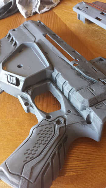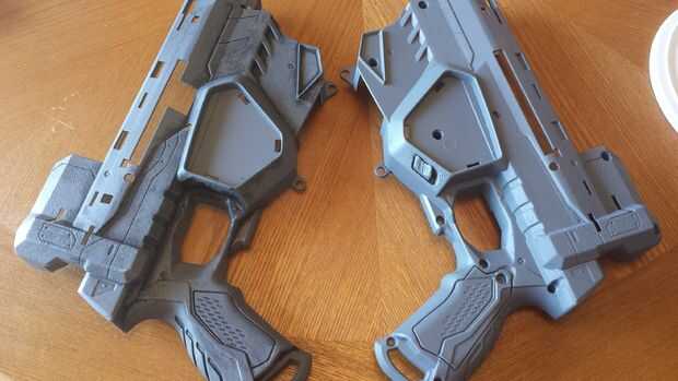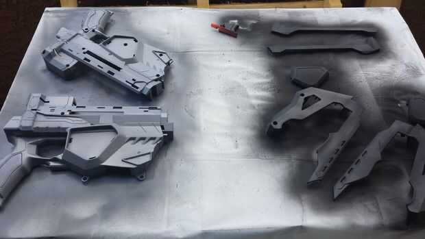 Esto es donde su visión de lo que quiere el arma para ver como empieza a convertirse en realidad. La paleta de colores que usted elija, por supuesto, usted es. Me gustaría ponerte negro y gris y utiliza algunos de los guns originales colores para añadir alguna llamarada. Yo prefiero la apariencia de pinturas planas y eligió un plano gris para el cuerpo principal del arma y un plano negro para los accesorios más pequeños para la parte exterior de la pistola. Decidió no pintar el riel de montaje verde claro para que los LEDs aún brillará a través de.