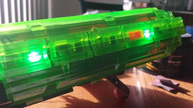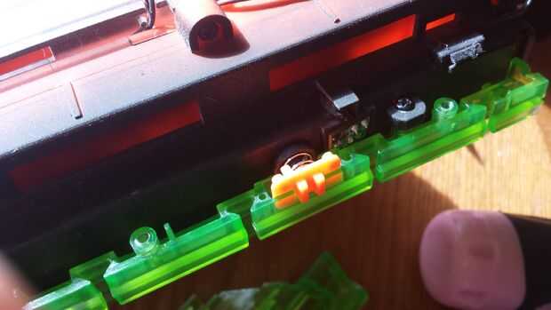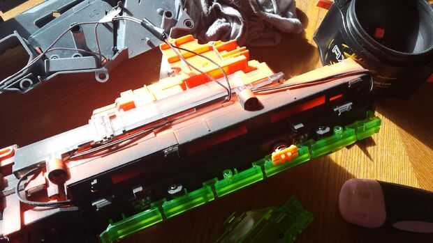 Ahora viene la diversión, poniendo detrás juntos! Las primeras medidas tomó fue reinstalar algunos de los pedazos de la cáscara externa. Siguiente que era el momento para volver a colocar los cables de la batería pack para los LEDs. No pretenden ser ningún tipo de electricista, pero volver a colocar el cable rojo con el rojo y el cable negro con el negro es bastante autoexplicativo. Después de terminar es importante verificar las conexiones haciendo que los LEDs encienden (fotos 3-5).