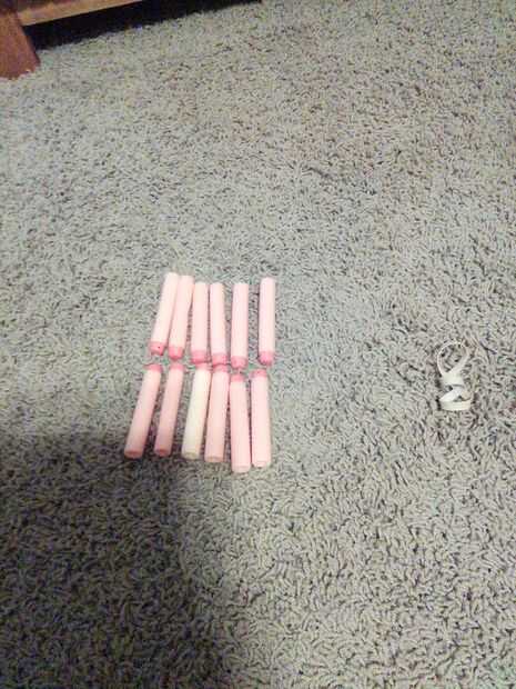 este Instructable le mostrará cómo hacer una Granada NERF fácilPaso 1: materiales Los materiales necesarios son:•Una presión pulsera (una de las cosas que son un palo hasta que aciertes en tu muñeca)•15-20 NERF optimizada darts(Or stefans)•El promedi