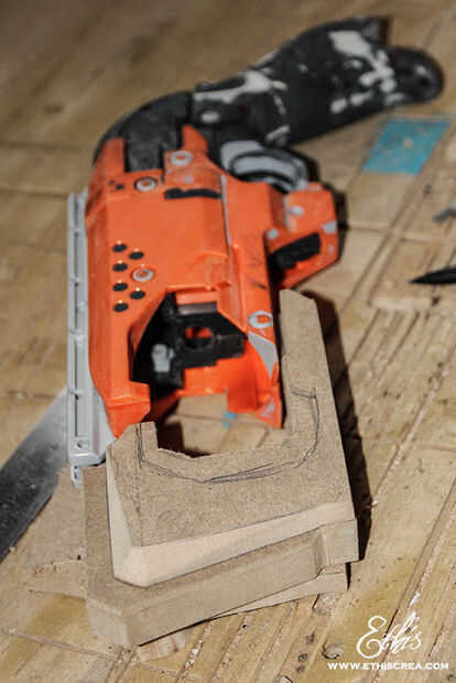 Cuando establecí la forma buen patrón, corté tableros MDF que van a crear el grosor del cañón. MDF es muy práctico: se ve como cartón comprimido y puede ser lijado y corte sin dejar que cualquier fibra de madera vista. Astough, permite smoothforms.