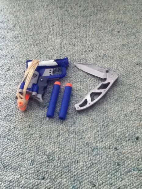 Cuchillo o tijeras, sacudida de Nerf, dos optimizada o élite dardos Nerf, nada en el Instuctables vinculados.