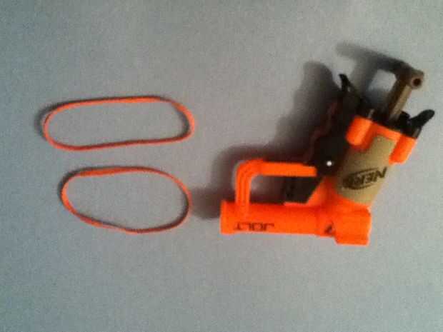 el propósito de esta modificación es agregar aproximadamente 10 pies de tiro hasta la pistola Jolt EX-1.Para esta modificación usted necesitará lo siguiente:JOLT EX-1 Nerf BlasterAlicates de puntaDestornillador de cabeza planaDestornillador Phillipsr
