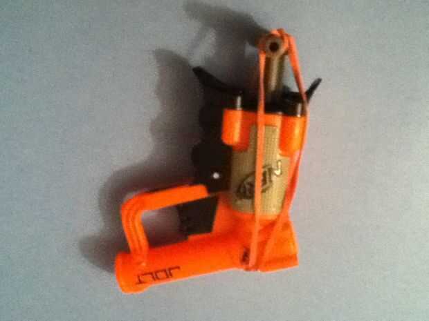 el propósito de esta modificación es agregar aproximadamente 10 pies de tiro hasta la pistola Jolt EX-1.Para esta modificación usted necesitará lo siguiente:JOLT EX-1 Nerf BlasterAlicates de puntaDestornillador de cabeza planaDestornillador Phillipsr