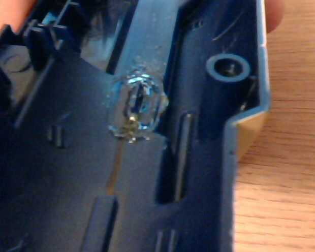 Sacar la lente frontal y el interior del cuerpo donde nuevos soportes se caliente pegar la marca. He usado repuesto plástico de la extensión de la pistola/cañón que trabajó perfecto para esto.