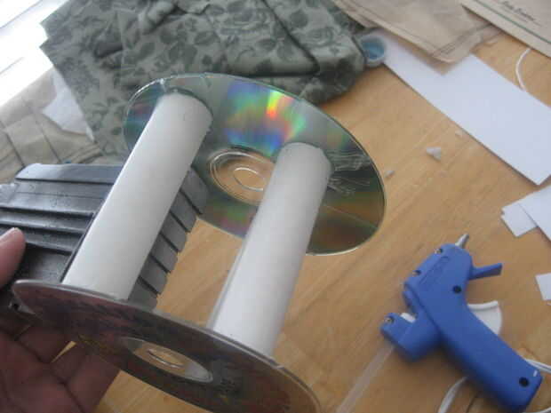 pegamento las piezas de pvc entre los discos para hacerla más sólida