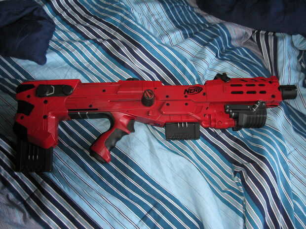 Nerf Longshot pintado rojo paintjob, modificación de resorte de 6kg y varias modificaciones cosméticas