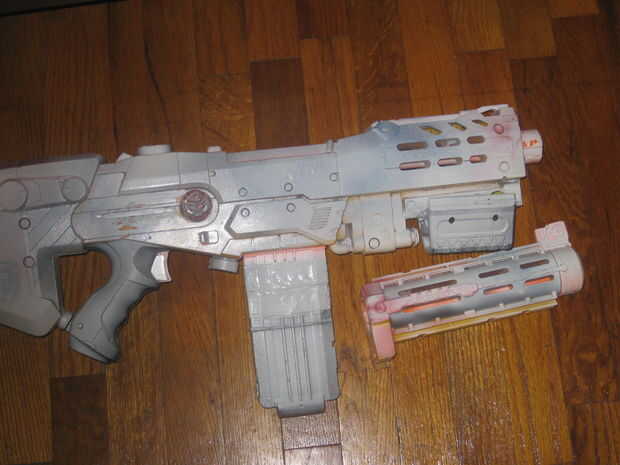 Nerf longshot trozo nariz c36. Mi hijo pidió una imagen profesional para su arma. Bueno, aquí está y espero que le gusta.Paso 1: Obtener la capa baseUsted debe saber si desea alto brillo, satinado o mate.Cinta lo que no quieres pintado incluso en cap
