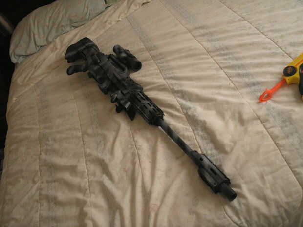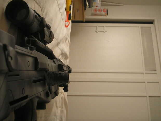un mod de nerf que hice en mi apuesta arriesgada que se hizo en un día aburrido. podía disparar más lejos sin el cañón pero agregué que el barril para mira
