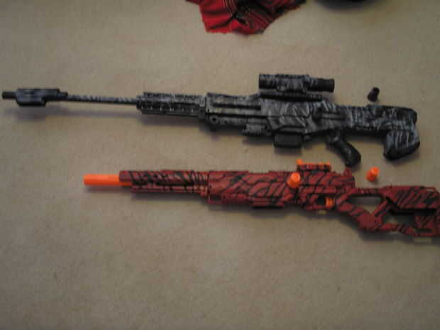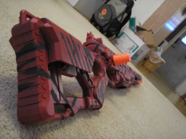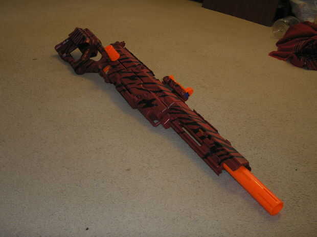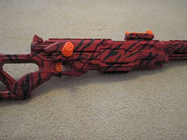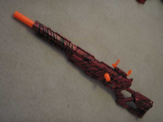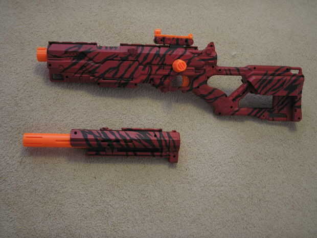 Nerf Longshot pintado rojo paintjob, modificación de resorte de 6kg y varias modificaciones cosméticas