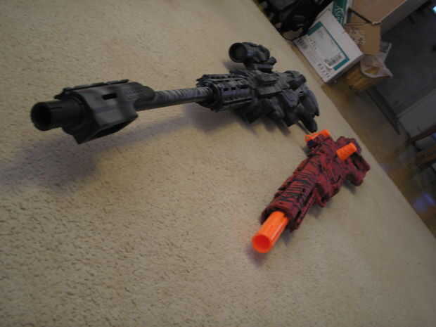 se ha hecho para el reconocimiento, pero no para el Retaliator - hasta ahora MUHAHAHA!Paso 1: Materialz Se necesita:Nerf RetaliatorBarril de Nerf LongstrikeStock de Nerf RaiderPaso 2: La ruptura Tomar todos los accesorios de la Retaliator.Paso 3: Att
