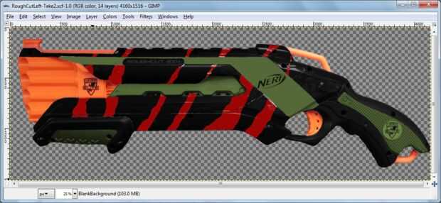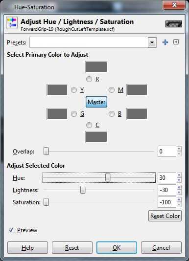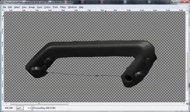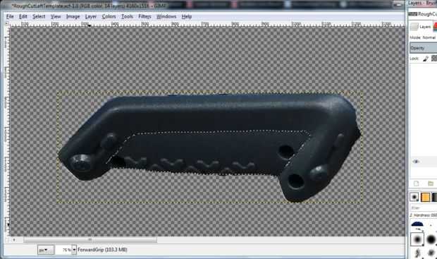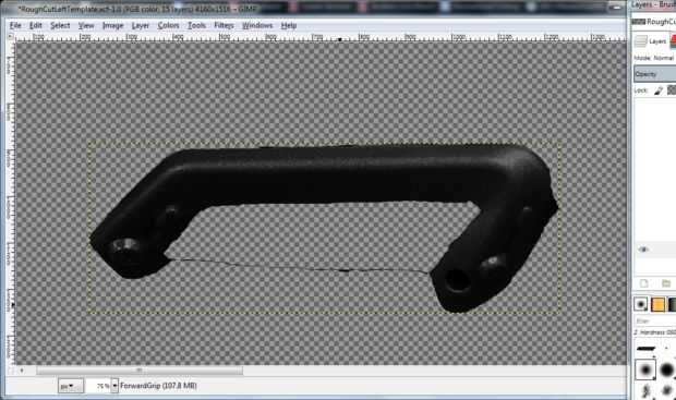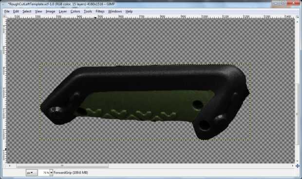 Ocultar todas las capas excepto la que está diseñando. Primero voy a mostrar el diseño para lo que yo he etiquetado como "ForwardGrip" (se puede adivinar que pieza que es?) El diseño debe ser un negro plano, con un agarre verde oliva.