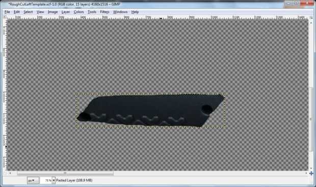 Estos pasos fueron bastante utilizados en la mayoría de las otras secciones, con la excepción de las rayas rojas (ver última imagen). Para lograrlos, había seleccionado la capa correcta luego utiliza la herramienta de selección de forma libre para dibujar rayas. Las rayas fueron invertidas (las secciones eran negras, este los cambia a blanco) y luego la función de colorear fue utilizada para cambiar el área seleccionado/raya en la capa de rojo sin crear una nueva capa.