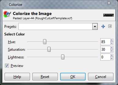 Para la parte verde: colores > Desaturar > luminosidad (o cualquiera que le guste), luego colores > colorear (85/30/0, para el verde).
