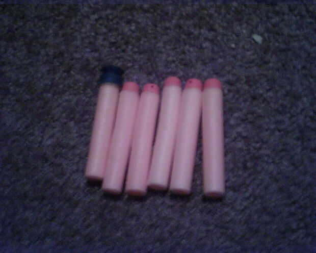 Esta modificación es muy simple. Todo lo que necesita son seis dardos de sistema de clip. La razón que le sugiero utilizar clip sistema dardos es porque sólo tenía cinco clip sistema dardos y dardos de ventosa. Belive o no el sistema clip dardos trabajo tan bien como los dardos de ventosa.