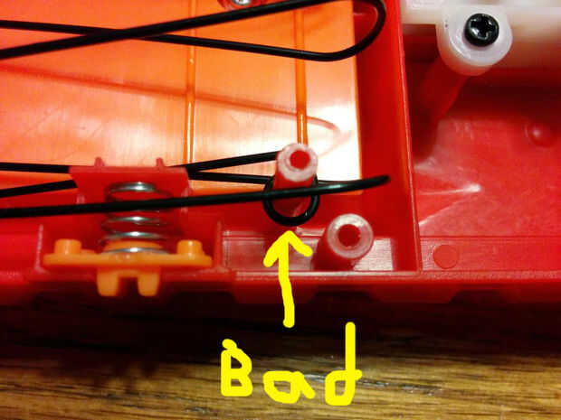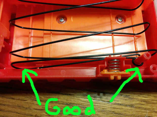 Usted necesitará asegurarse de que la primavera se mantiene por encima del tornillo bien a la derecha y se mantiene por encima de la repisa de la izquierda