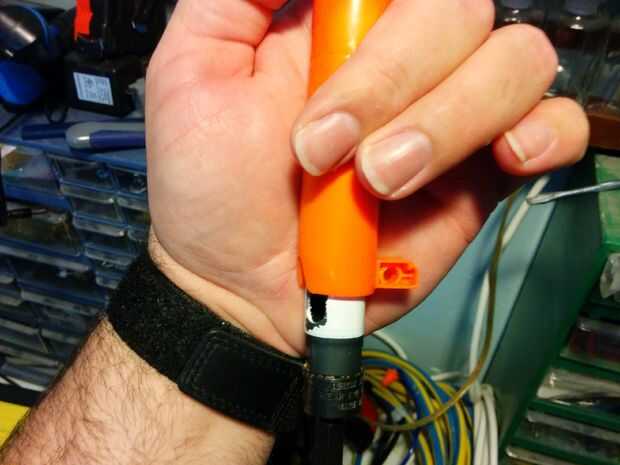 Al iniciar la perforación, necesitará sostener firmemente el cilindro. Recomiendo dejar el post mira gire alrededor de todo el camino hasta que se presiona contra la palma de su mano, en la dirección que gira el taladro. De lo contrario, una vez que la broca coge el Restrictor de aire, moverá a la fuerza de un tirón el barril, y el post mira cogerá la mano (que picará - lección aprendida).
