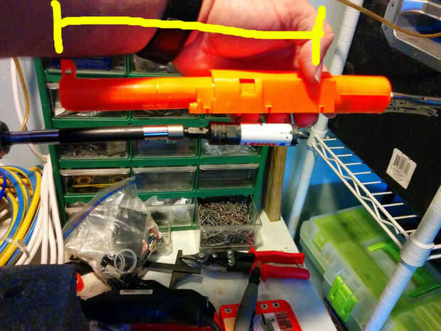 Si extienden el montaje de barril y sostiene hasta una luz brillante, debe ser capaz de ver la sombra del diafragma para el émbolo (que debe ser afianzado con abrazadera en lugar). Esta es la profundidad máxima que se puede taladrar para sin arruinar el blaster.