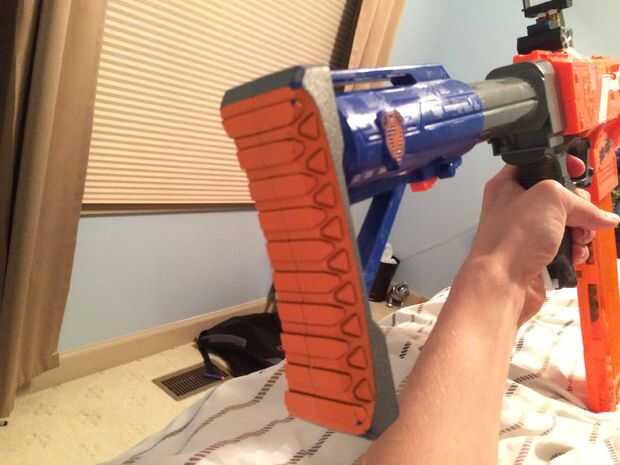 ¡He vuelto! Lo sentimos, no hay cerradura de combinación hoy en día, pero debe ser próxima. de todas formas, mi hermano me consiguió una blaster NERF Zombie Strike Doublestrike para la Navidad y decidí modificarlo para montarse en la muñeca!Paso 1: D