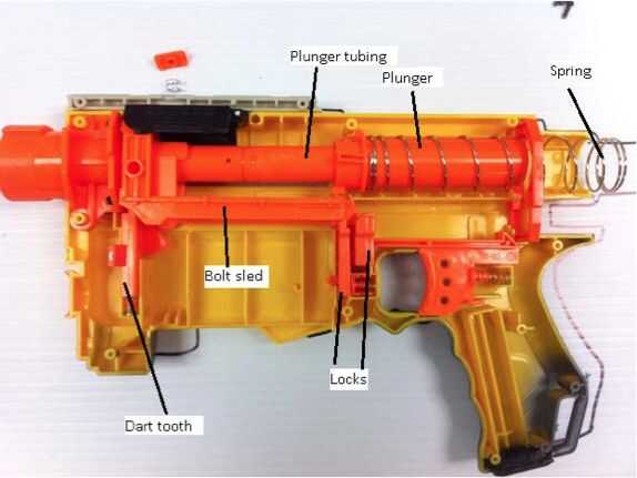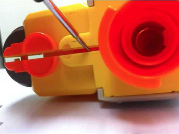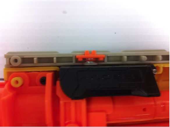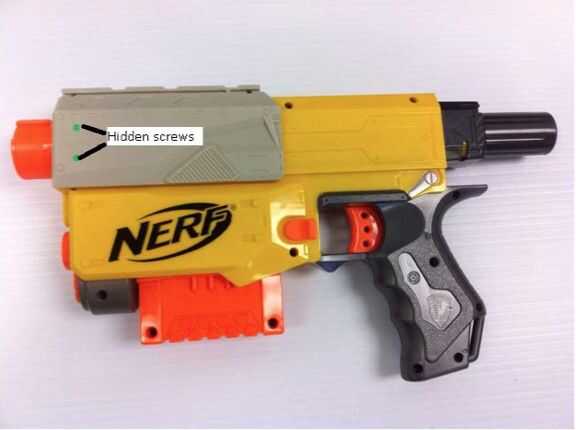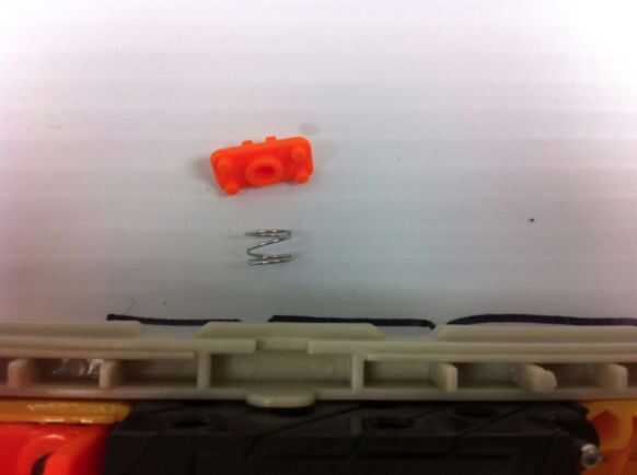 Paso 3: Quite suavemente la tapa trasera de la pistola. Asegúrese de que usted no lo deja accidentalmente su blaster amartillado, porque la primavera podría disparar hacia fuera y causar lesiones. (Fig. 3)