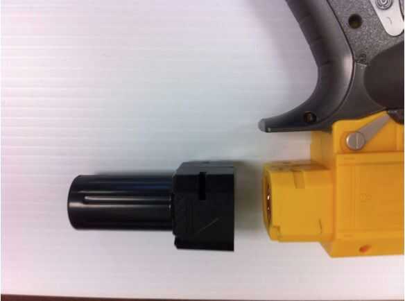Paso 4: en este punto, la pistola debe separarse fácilmente en dos mitades. Si parece estar pegando, verifique para asegurarse de se han quitado todos los tornillos. Si el problema persiste, utilice un destornillador de cabeza plana y haga palanca suavemente alrededor de la costura hasta que se separe el blaster. (Fig. 4)