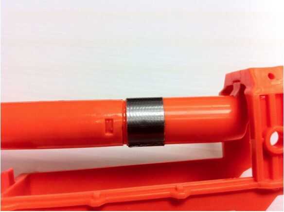 Paso 2: Con cinta adhesiva alrededor del émbolo para sellar los orificios de la tubería. Si usas pegamento, asegúrese de que no hay exceso de pegamento gotea en el émbolo, ya que puede causar el blaster no disparar correctamente.