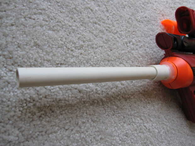 Es realizar un simple barril "reemplazo", mencionado en los sitios web de Nerf como un arma "destacó", cuando el barril nuevo simplemente se pega en lugar de un viejo, acción. Una desventaja de designar una pistola Nerf, sin embargo, es que tarda más en cargar a un stefan en el cañón de la configuración del acoplador. Si va en la parte trasera carga stefans, tienes ram stefan hasta la parte posterior del cañón. En una guerra de Nerf, es difícil de usar, teniendo en cuenta el hecho de que se debe llevar alrededor de una baqueta.